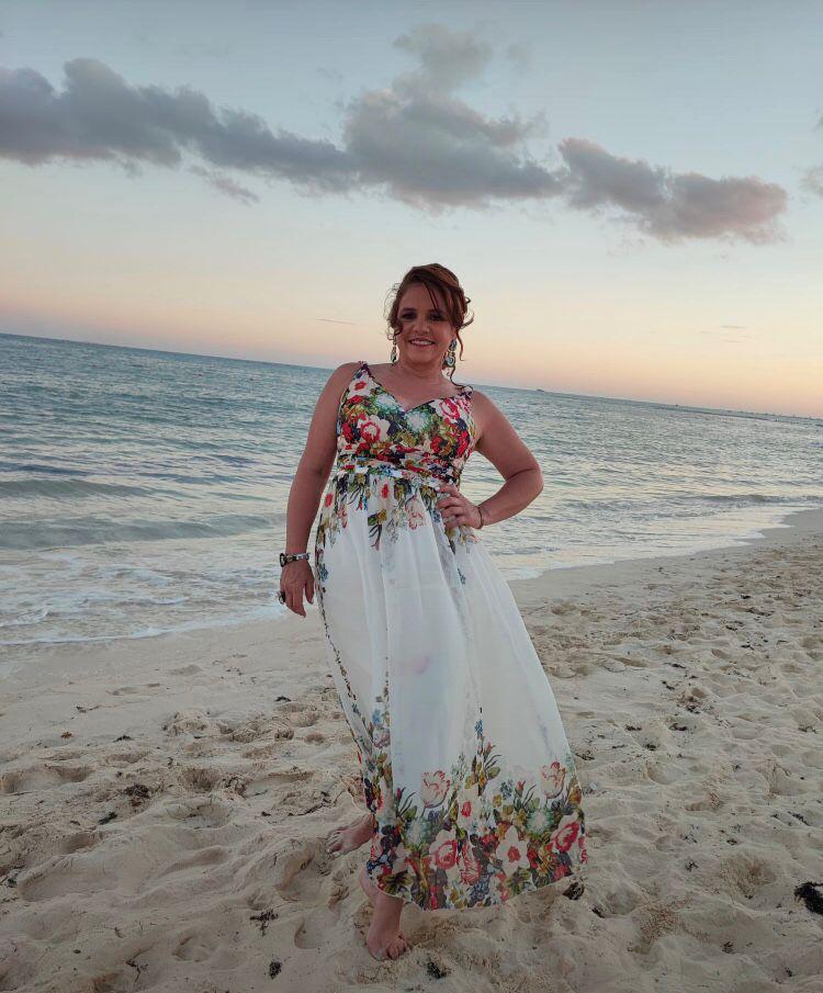 "Agradecida con Zhamy por tan hermosa creación hecha a mano y con todo el corazón. En ésta ocasión he lucido un conjunto de pendientes, pulsera y anillo que hacen juego con mi vestido dándole un toque de armonía con tan hermoso diseño. "