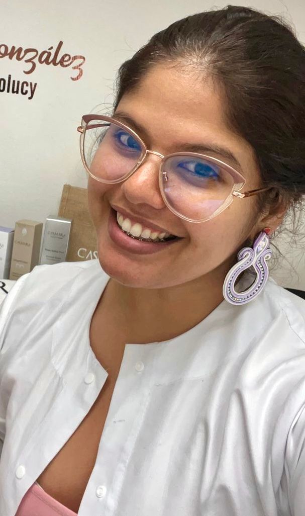 "Mi outfit consiste siempre en usar mi bata, la cual me representa como médico. Pero no está completo sin mis bellos pendientes de Zhamy Designs "
